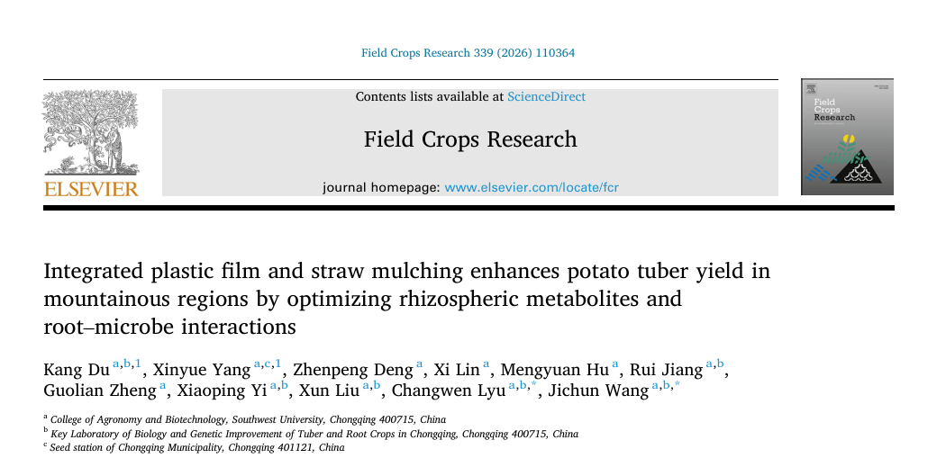 Field Crops Research | 薯类团队揭示地膜与秸秆覆盖能优化根际代...