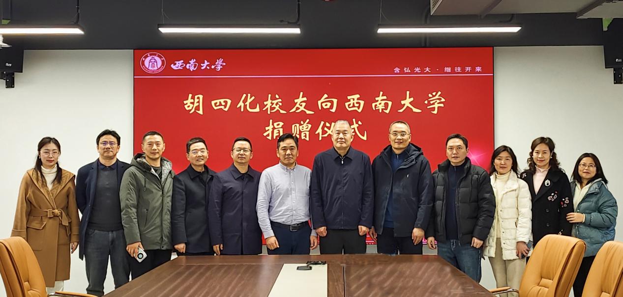 1月4日,学院1996级农学专业校友、湖南本源青蒿种植专业合作社理事长胡四化向袁隆平奖学金捐赠仪式在对外联络办公室1201会议室圆满举行。学校党委常委、副校长葛信勇,对外联络办公室主任、教育基金会秘书长唐军,农学与生物科技学院领导班子全体成员,以及对外联络办公室和学院有关工作人员参加会议。捐赠仪式由学院党委书记阳义健主持。