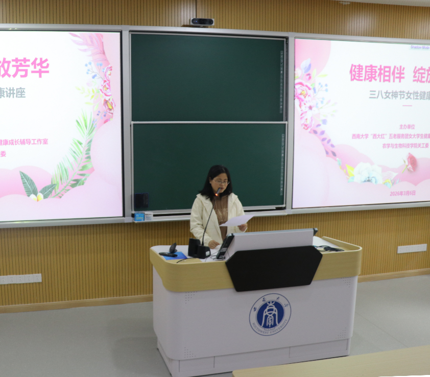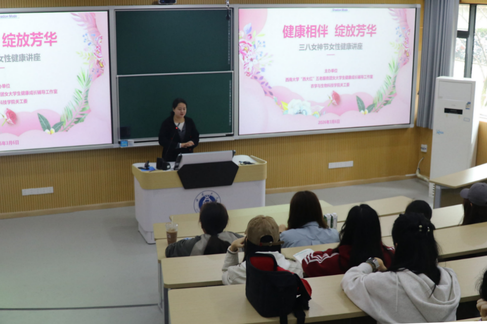在第114个“三八”国际妇女节来临之际,3月6日,农学与生物科技学院关工委联合西南大学“西大红”五老服务团女大学生健康成长辅导工作室,成功开展女性健康专题讲座。本次活动特邀校医院张敏主任医师担任主讲,学校女大学生健康成长辅导工作室陈道云、郑莉佳老师以及学院2025级本科生共同参加。