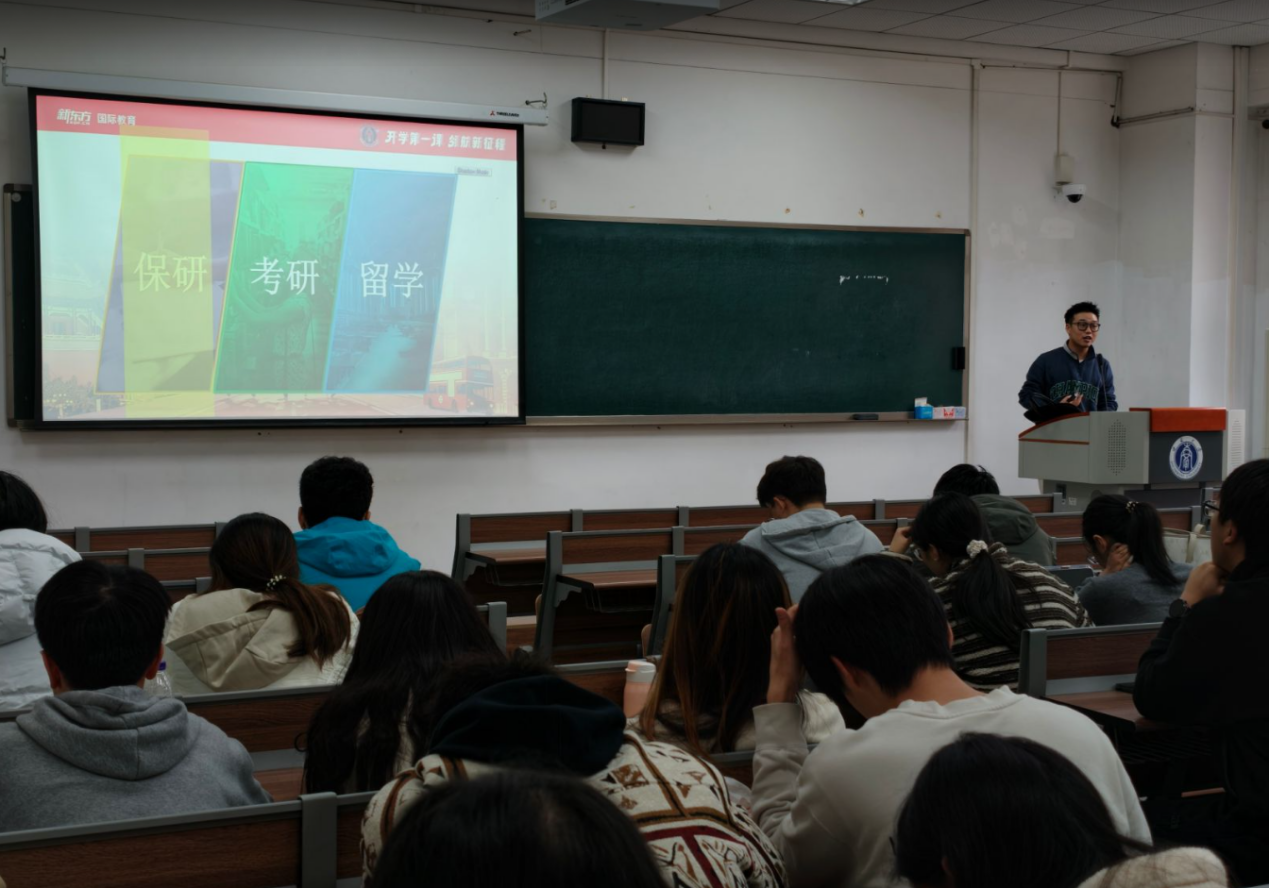 升学规划讲座上,赵文龙老师以“多途径升学”为核心,为同学们系统拆解保研、考研、留学三条升学路径的核心要点与实操策略。针对保研,老师结合学院往届学长姐的保研去向案例,详细讲解了保研夏令营、预推免、九月推免的申请时间、材料准备与考核形式,强调本科绩点、英语能力及科研、竞赛软背景的核心作用,并给出从大一到大三的保研时间轴,指导同学们分阶段夯实基础、积累成果。对于考研,老师分析了近几年考研报名与录取数据,指出应届考研上岸率偏低的现状,拆解了考研择校择专业的 “冲稳保” 原则、初试复试的核心考核要点与备考规划,提醒同学们结合自身优势做好科目选择与复习安排。在留学板块,赵老师对比了国内外读研的时间与成本,介绍了留学申请的核心要素、中外合办硕士项目的分类与选择注意事项,分享了优秀留学案例,并强调雅思等语言成绩在留学申请及就业中的多重价值,同时为同学们制定了考研保研留学双保险的时间规划,让不同基础的同学都能找到适配的升学方向。讲座中,老师分享了多位学长姐保研考研留学的案例。他特别指出,雅思等英语成绩不仅是留学的敲门砖,更能为保研、考研复试及未来求职“加分”,鼓励同学们尽早提升英语综合能力。老师还针对同学们关心的 “夏令营被拒后是否继续申请”“名校与专业如何平衡” 等问题进行解答,干货满满的分享让同学们对升学规划有了更清晰的认知。
