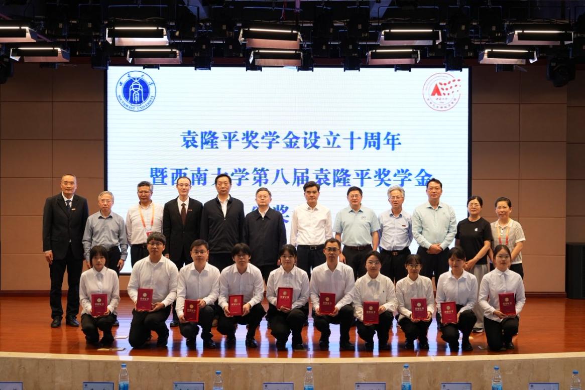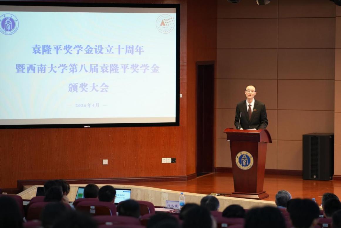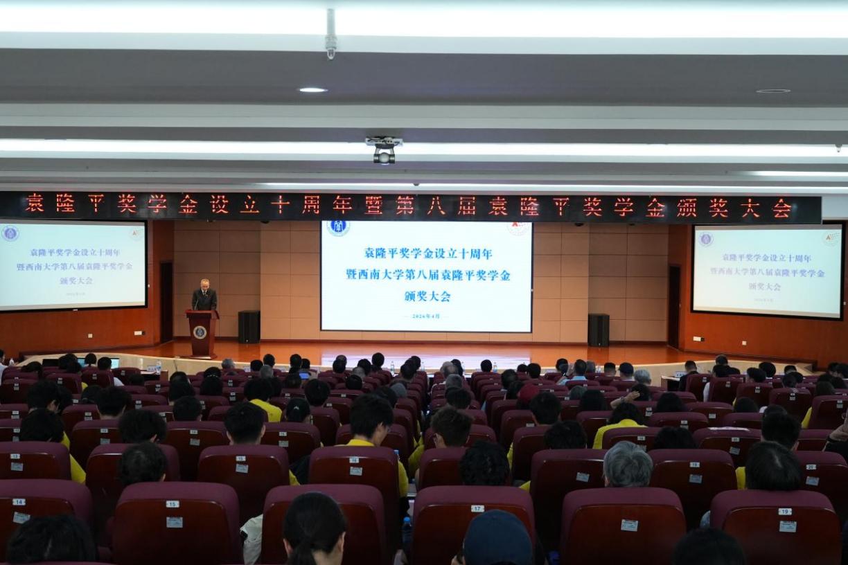 2026年4月18日,袁隆平奖学金设立十周年暨西南大学第八届袁隆平奖学金颁奖大会在隆平楼404报告厅举行。出席大会的有中国工程院院士、湖南省农业科学院党委书记、杂交水稻全国重点实验室主任柏连阳,湖南杂交水稻研究中心副主任、袁隆平院士之子袁定阳,1979级校友、重庆市人大常委会副主任欧顺清,1979级校友、南京农业大学教授、国家杰出青年科学基金获得者马正强,1986级校友、南充市农业科学院研究员、全国三八红旗手、全国先进工作者何素兰,1987级校友、达州市农业科学研究院麻类作物研究所所长、全国先进工作者杨燕,1999级校友、西藏自治区农牧科学院副院长、国家级人才王文峰,2002级校友、西藏自治区农牧科学院农业研究所副所长、第十四届全国政协委员达瓦顿珠,西南大学党委副书记黄杰,农学与生物科技学院原院长、国家级人才、全国五一劳动奖章获得者李加纳,农学与生物科技学院原院长、国家级人才、全国先进工作者何光华,西南大学研究生院院长、农学与生物科技学院院长吕典秋。参加大会的还有学院党政领导、全国各地的校友代表和学院师生代表400余人。大会由学院党委书记阳义健主持。